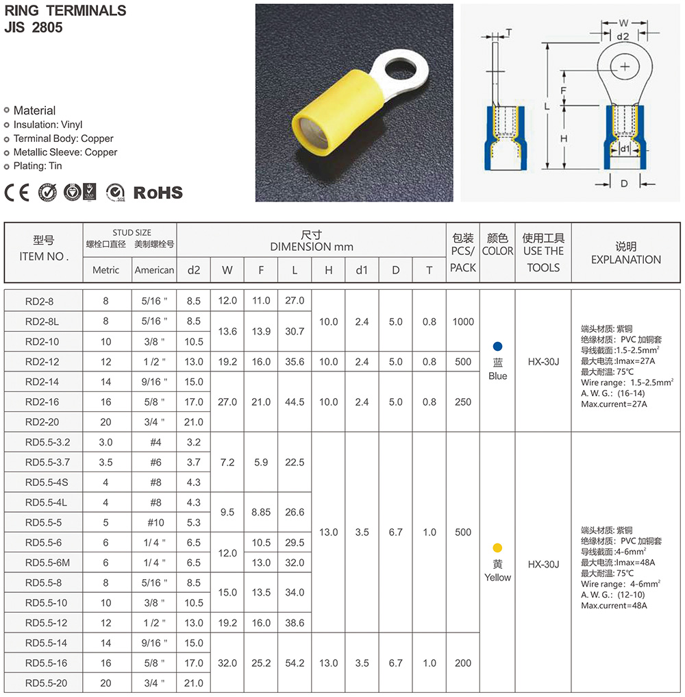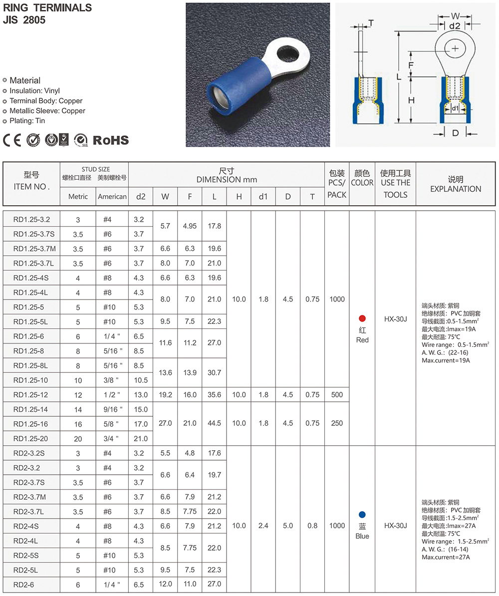 圓形預(yù)絕緣端頭(RV型)