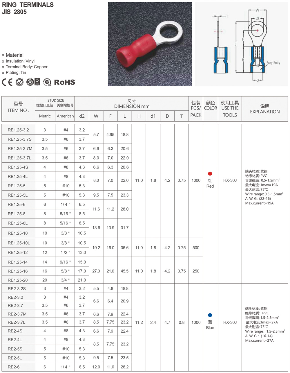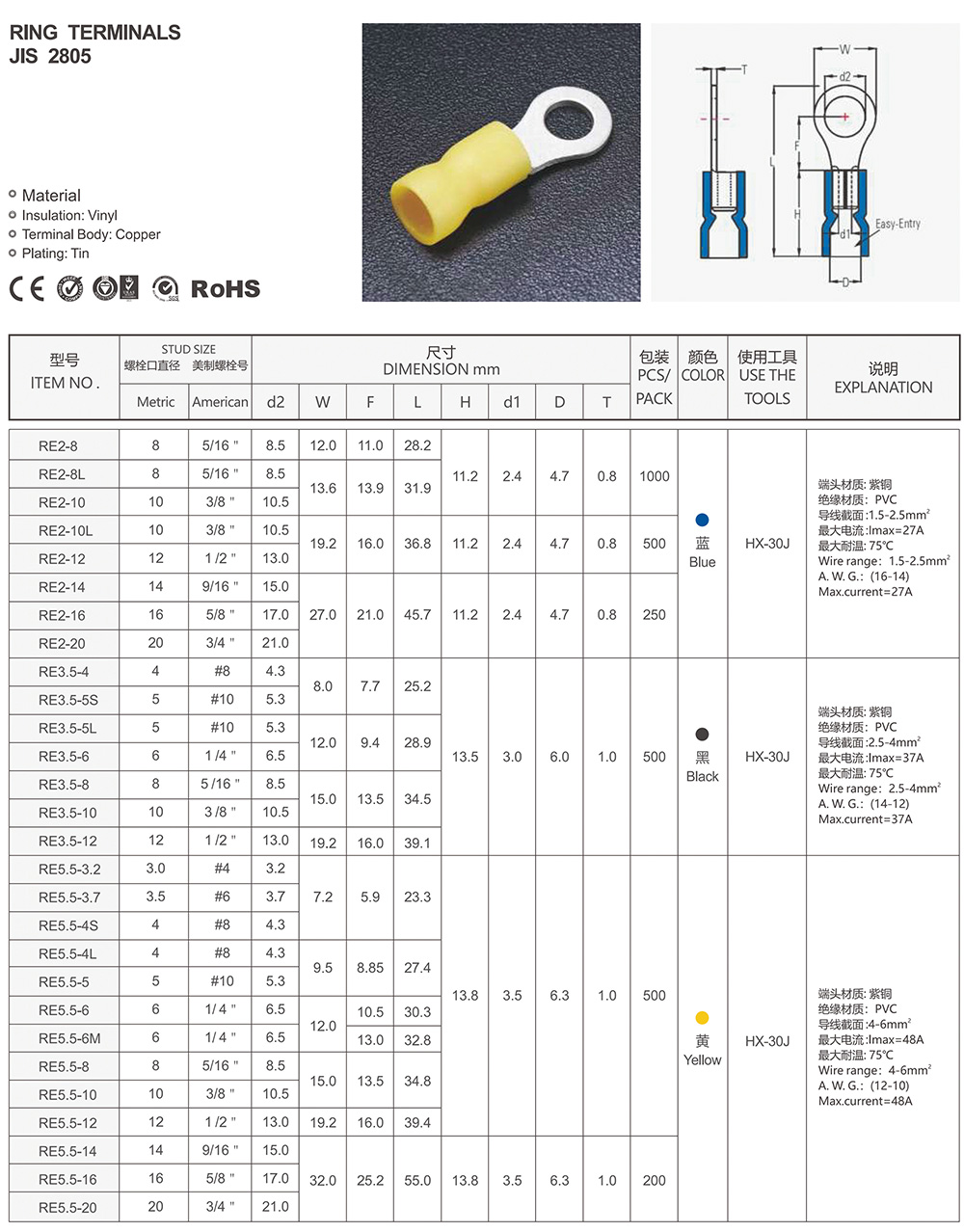 圓形預(yù)絕緣端頭(RV型)