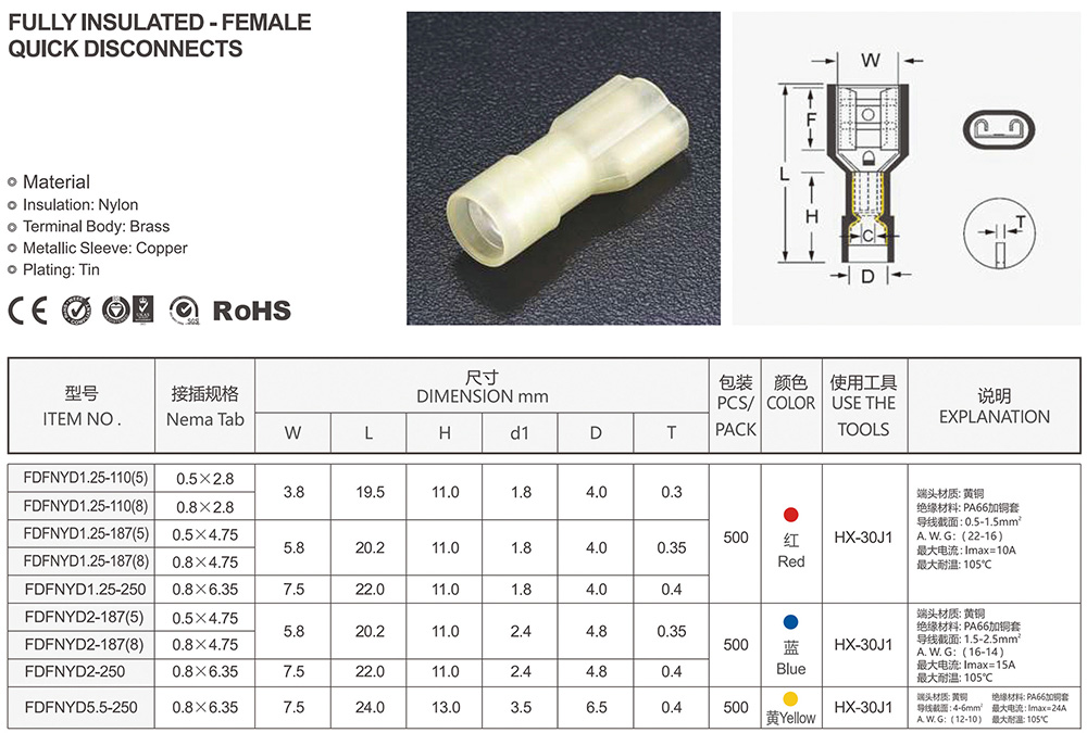 圓形預(yù)絕緣端頭(RV型)